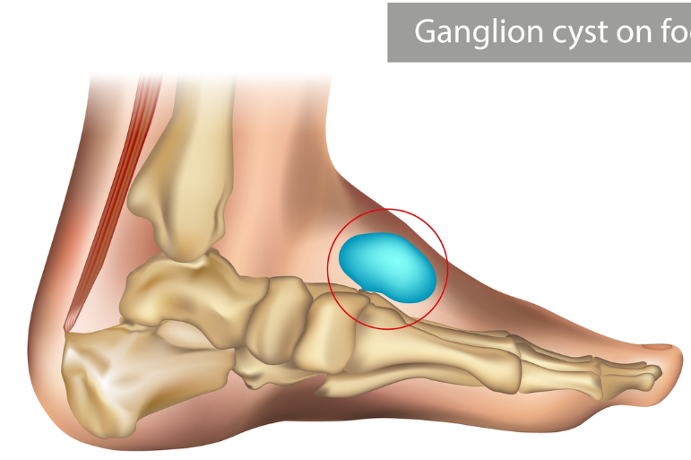Το γάγγλιο είναι ένας καλοήθης κυστικός σχηματισμός που σχηματίζεται από την άρθρωση. Αν και συχνότερα εντοπίζεται στον καρπό, ένα γάγγλιο μπορεί να εμφανιστεί και στο πόδι, ιδίως στην ραχιαία επιφάνεια του άκρου ποδός, στον αστράγαλο ή ακόμη και στα δάκτυλα.